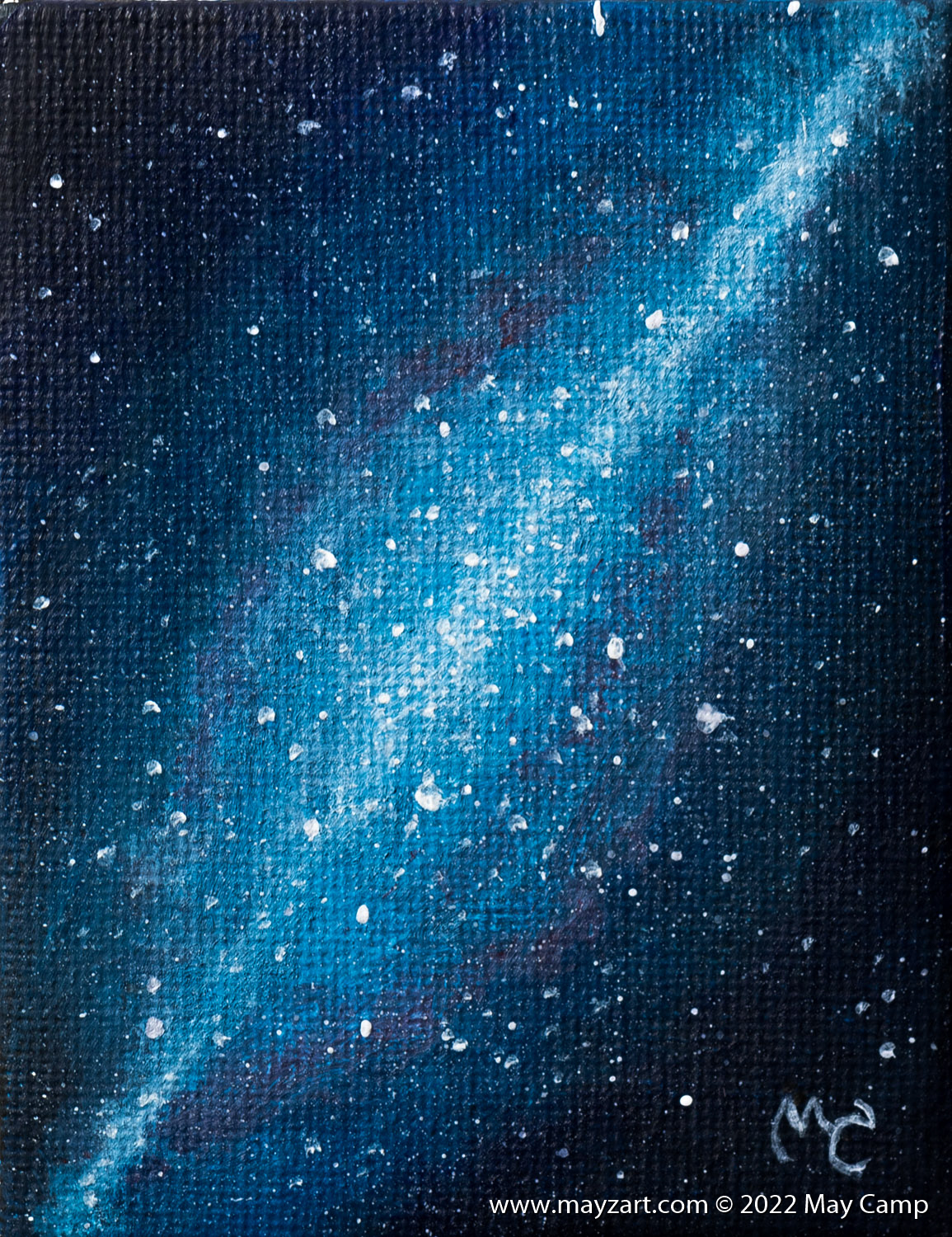 This is the fourth of many night-sky/galaxy/star paintings in my mini-canvas collection!