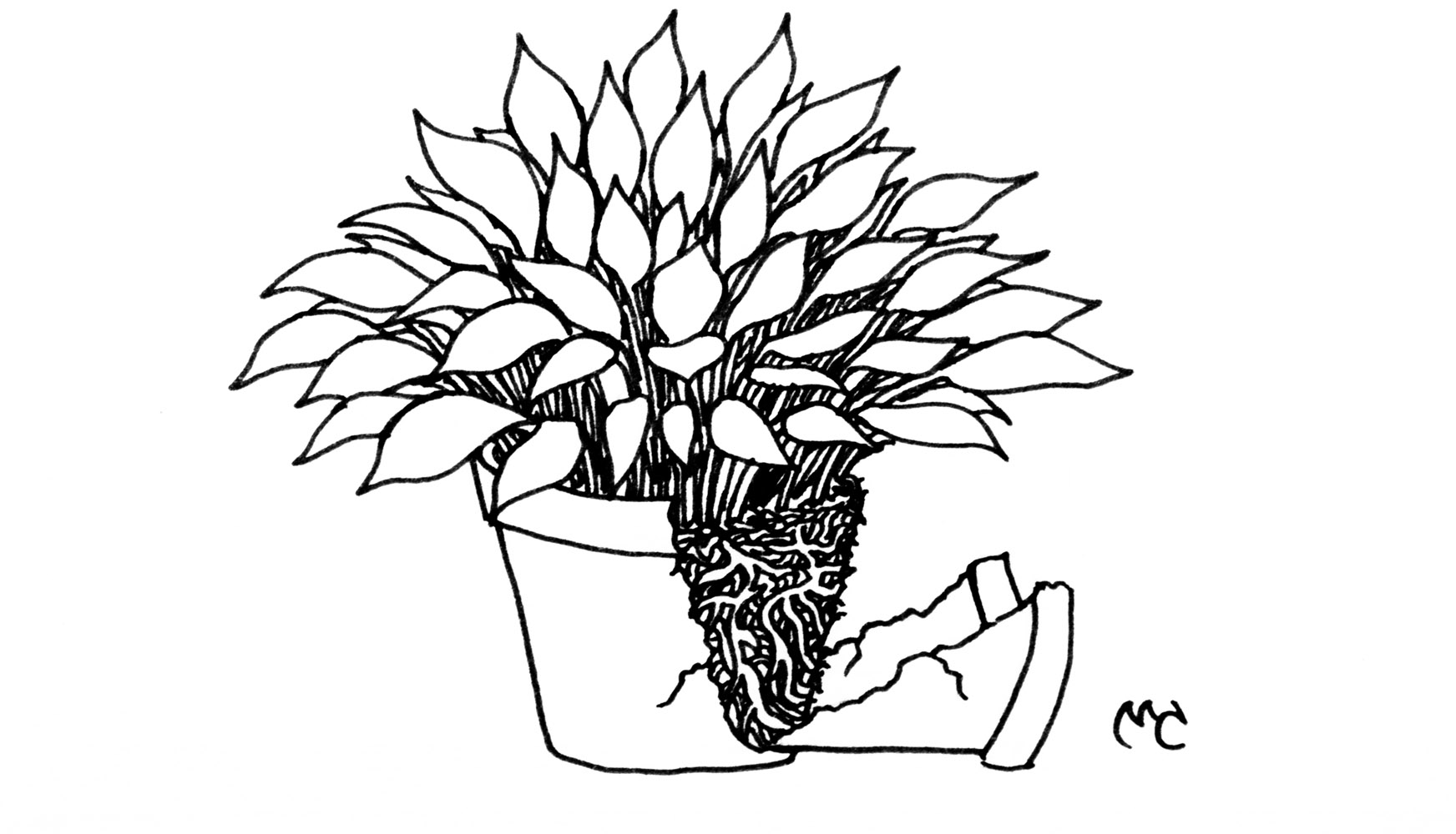 Keywords: inktober, inktober2019, 2019, ink, marker, pen, drawing, art, overgrown, plant, houseplant, drawing a plant, rootbound, root bound, broken clay pot