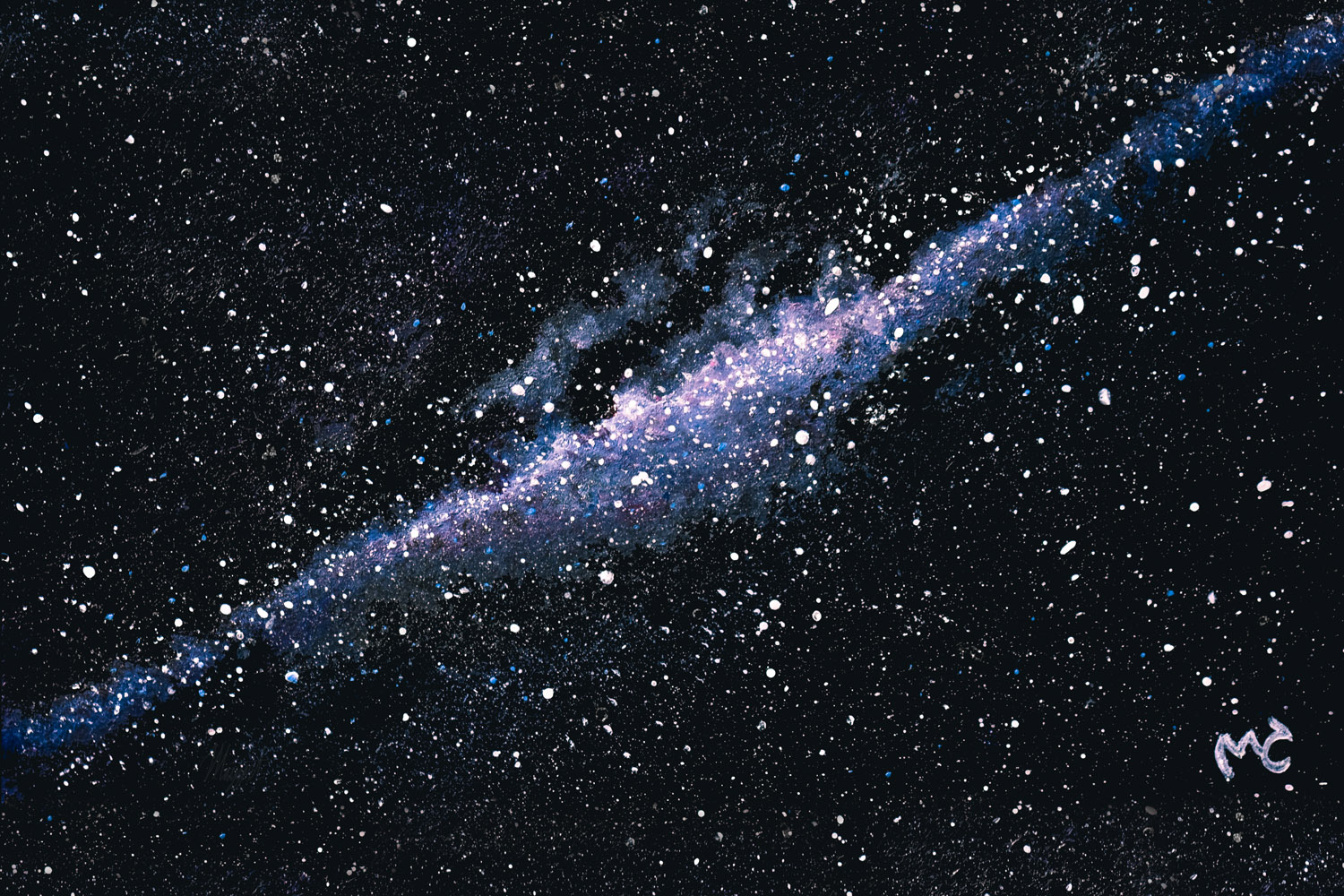 Keywords: art, painting, paint, acrylic, realistic, space, night, stars, milky way, telescope, galaxy, spaceship, nighttime, light, light pollution, dots, spots, infinity, universe, universal, science fiction, sifi, syfy, beautiful, beauty, floating, clouds, cloudy