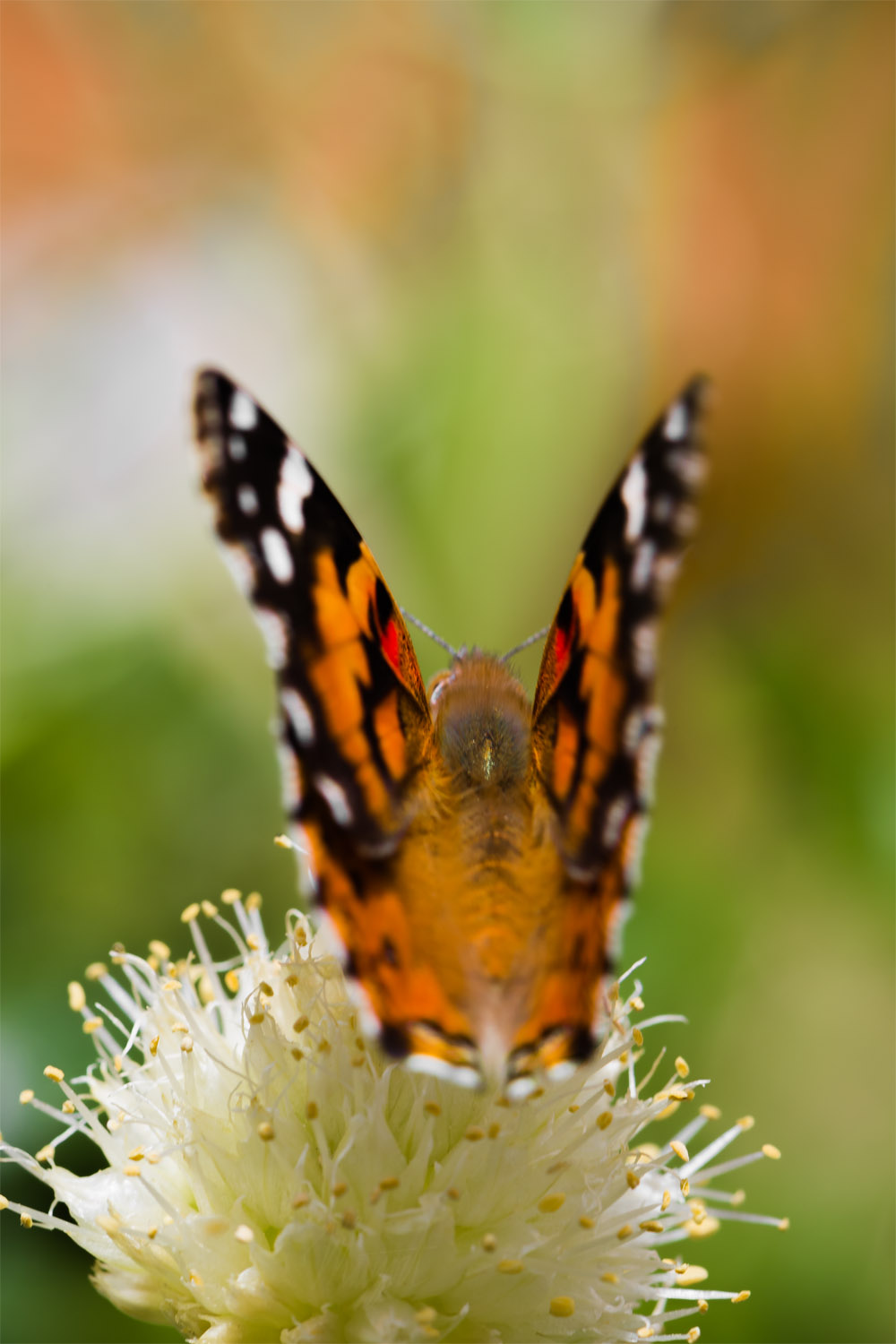 (the quality of this image preview has been reduced for the web)A Painted Lady butterfly with beautiful orange, black, white, and red colors on its wings.